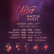 - On April 12, 2020, to commemorate the first anniversary of After being released, a global watch party was organized. Anna Todd live tweeted during the event alongside some cast and crew members.
